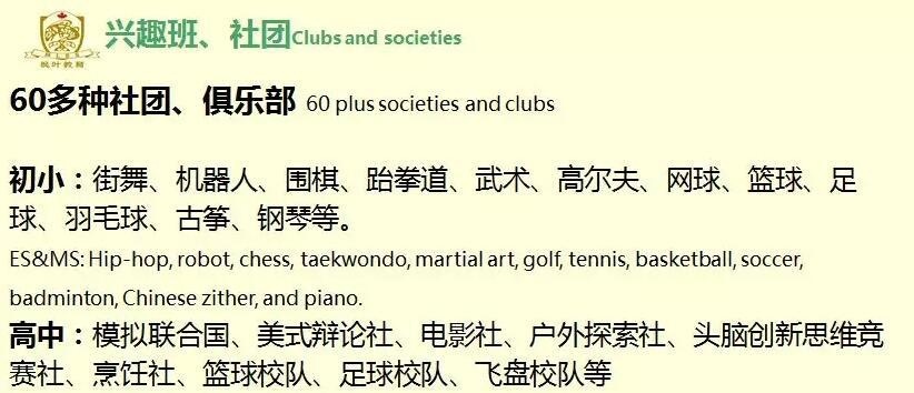 2~实施枫叶英语教学(枫叶内部教材,每天一节外教,一节中教)英语是枫叶的特色,课时量大,校园英语氛围好,听说读写全面学习,课前五分钟演讲,小学毕业词汇量达3000个。