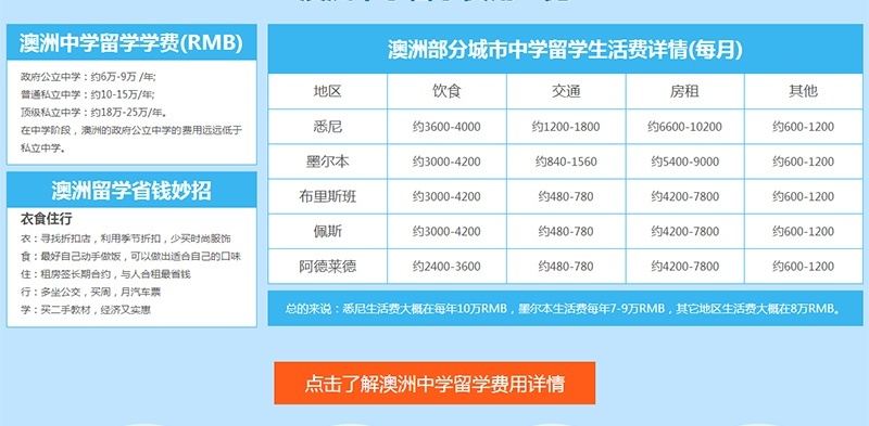 众所周知,澳洲每年的学费也便宜不到哪去,而且每年都在不同程度的增长。学费基本上占了澳大利亚留学费用的一半,甚至是三分之二,而且学费年年都还在涨… 澳大利亚**的学费由专业与学校共同决定。通常来说,医学、商科学费**高,工程类其次,而社科类相对较低。 2020年,墨大商科学费是A$45,824,而莫纳什**商科学费是A$45,800。 **靠前的院校学费也较高。 如澳大利亚的八大校,除了比较贵的专业外,大多数学科一年的费用都集中在A$35,000~42,000的范围。 普通**一年的课程费用大概在A$25,000-35,000的范围。 如果挂科,还需要补缴课程费用,也是一笔不小的花费…